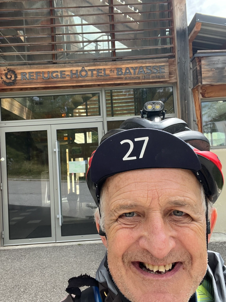 James and Kate arrived. There is an easy camaraderie amongst participants of these events which even transcends national borders. They were riding as a pair. Later the same day I would see James outside a Carrefour changing his brake pads. I learned later they had then failed and he was wondering if he could follow Kate downhill with just one brake working (I reserve judgement on that idea!). Then mysteriously they came across a sign in the middle of nowhere to a bike shop for e-bike rental. Inside James asked the custodian if he might be able to fix his brake. “Mais oui” was the simple reply. He did. I have a theory that if they go back there now that shop will not exist. It was ‘The Miracle of The Alps Divide’.…